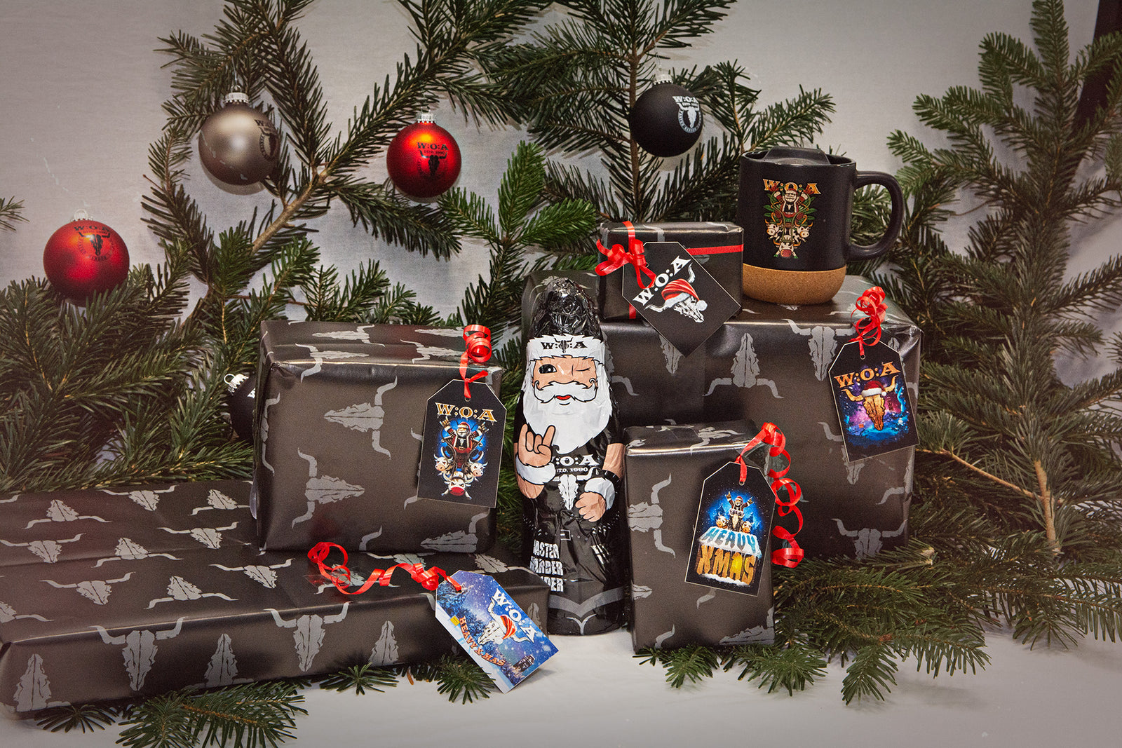 Zu den Highlights gehören so verschiedene Artikel wie unser Ugly Sweater, unser Keksausstecher in Schädelform oder die W:O:A Weihnachtsbaumkugeln.